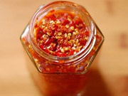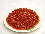 色辣椒醬取之于優等朝天椒。經過淘洗、精揀、破碎熬制而成。因此色澤鮮紅,辣椒醬的紅色來自辣椒的本色。 在烹調過程中具有上色、感官良好的特點,使人有一種強烈的食欲感。香本產品在熬制過程中,添加了二十余種香料。在吃火鍋、拌涼菜、烹飪過程中,加入本產品效果更佳。尤其在調制豆制品時更有于眾不同的效果。還可蘸饅